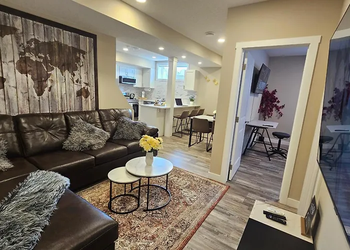 Overlooking the garden, the 1-room Luxury Basement Suite With 2 Bedrooms, 2 Queen Beds, Free Wi-Fi, And Free Parking is within a 7-km distance of Calgary Temple. Guests have the opportunity to make their stay at this spacious apartment more exciting by participating in snow skiing, hiking, and mini golf.